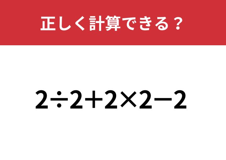 見た目以上に手ごわい問題!?「2÷2+2×2−2」正しく計算できる?