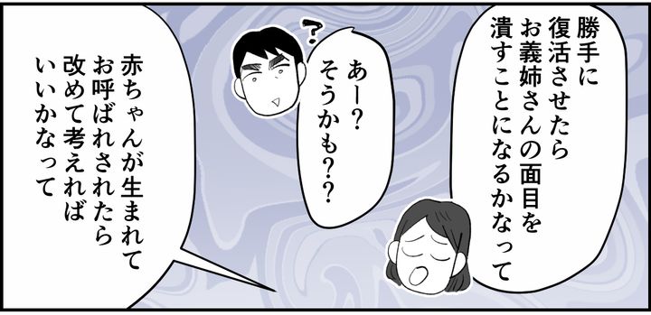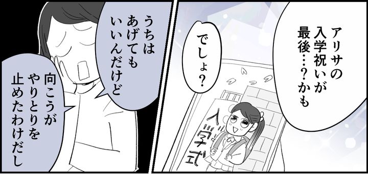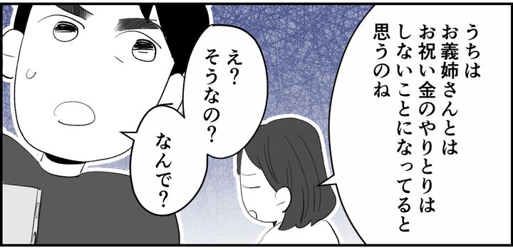 「うちは、お祝い金をあげてもいいんだけれど、それでまたお金のやりとりが復活したら、お義姉さんもいい気がしないかなって。お金のやりとりをなしにしたのは、お義姉さんの選択だろうし」と、あくまで“義姉の意思を尊重する”という話し方をしたためか、コウスケも「お祝い金なし」に納得してくれました。