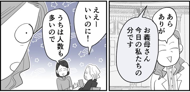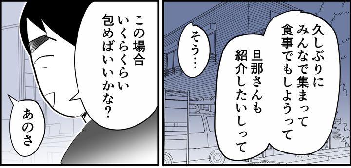メイちゃんの結婚が決まり、親族で食事会を開くことになったそうです。そんななかコウスケが「こういうとき、お祝いはいくら包めばいいんだろう?」と聞いてきました。そこで私は、義姉一家とはこれまでお祝いのやりとりをしていないことを改めて伝えました。
