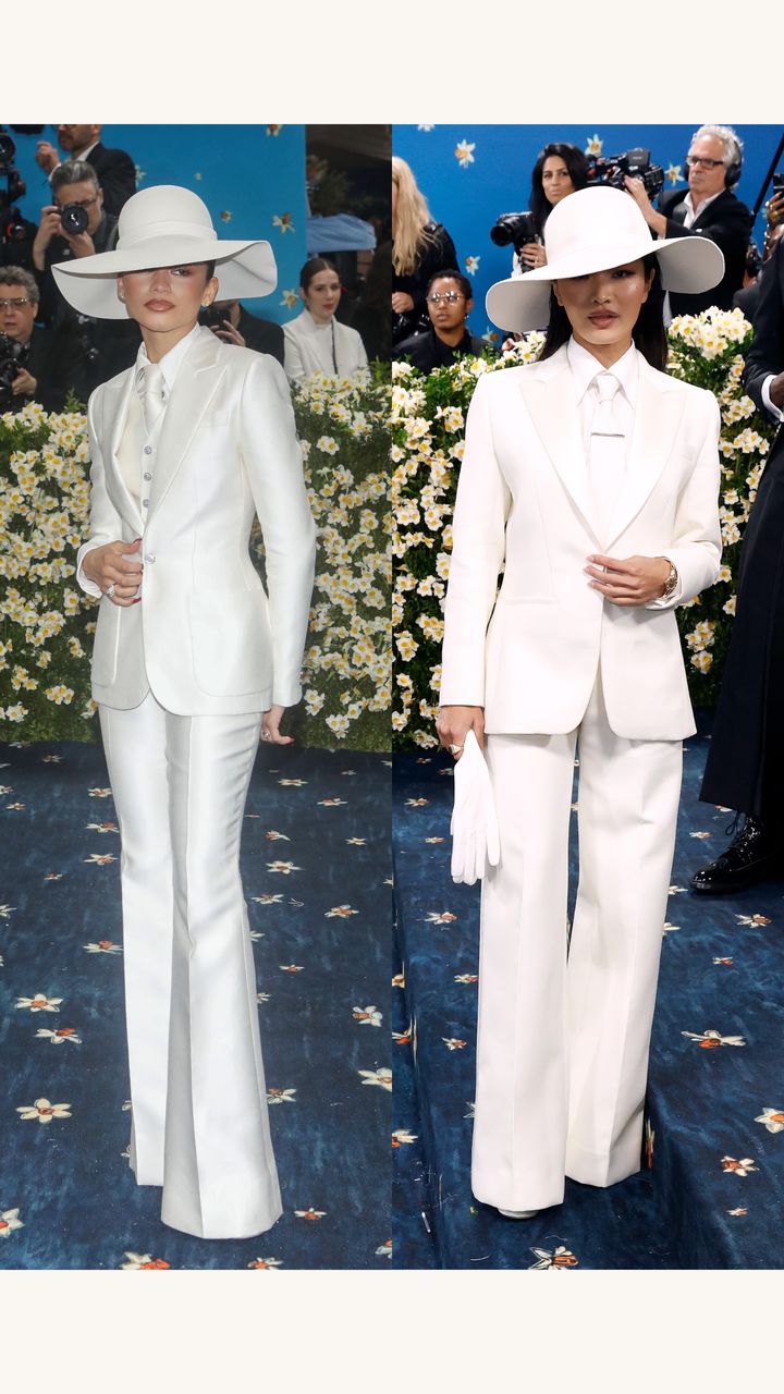 メットガラで話題になったのが、ゼンデイヤとアンナ・サワイの衣装が“丸かぶり”に見えたハプニング。別デザイナーによるルックだったけれど、どちらも白を基調にしたテーラードで、タイやハットまでムードがシンクロしていた。ゼンデイヤのスタイリスト、ロー・ローチは「がっかりしたはず」とあおられがちな空気を否定し、アンナのスタイリストであるカーラ・ウェルチとも良好な関係だと説明。さらにゼンデイヤはメットガラ初参加のアンナに花を贈ったとされ、わだかまりムードを一瞬で無効化した。
