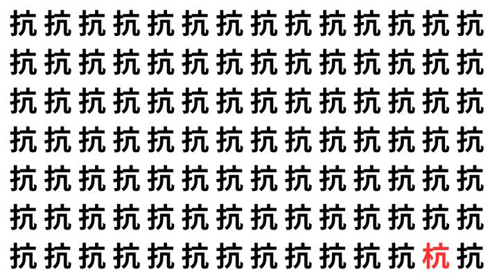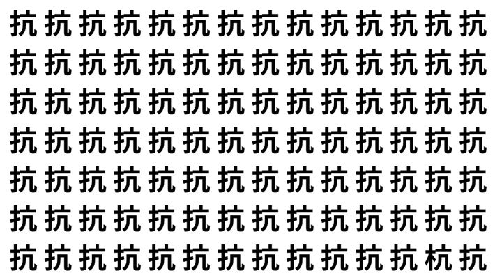 たくさんの「抗」の中に、よく似た別の漢字が1文字だけ隠れています。