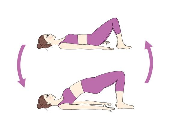 (1) 仰向けに寝転がり、両足を肩幅に開いて膝を立てる