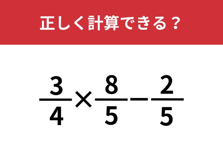「(3/4)×(8/5)−2/5」正しく計算できる?