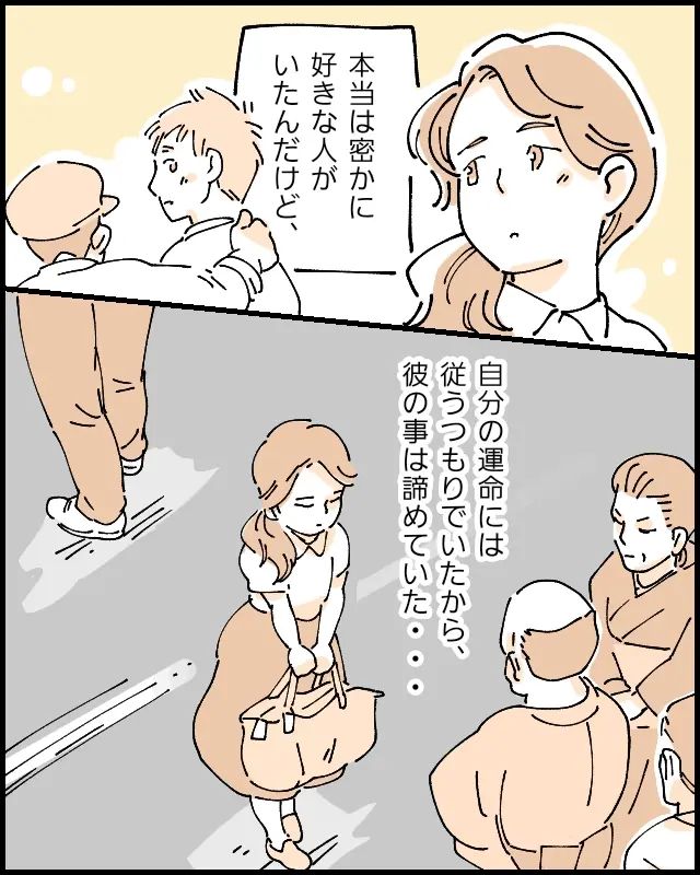 「本当は密かに好きな人がいたんだけど、自分の運命には従うつもりでいたから彼の事は諦めていたの」