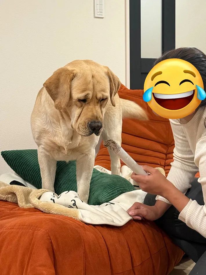 2. オモチャを取り上げられたレトリバー 見せた表情に「大笑いした」「予想以上」