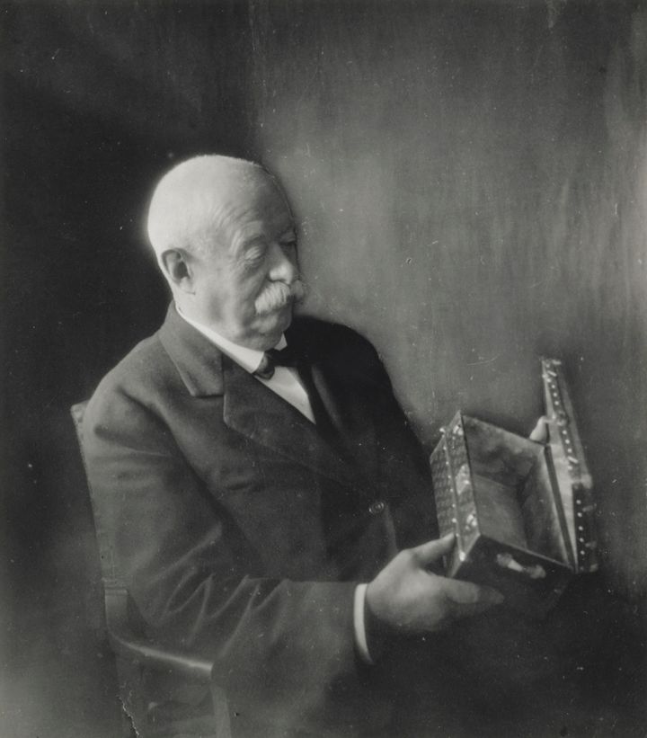 1930年頃、モノグラム・キャンバスの“マル・フルール”を手にするジョルジュ・ヴィトン。 Courtesy of LOUIS VUITTON