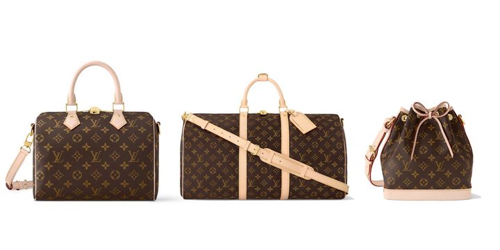 アイコニックなモノグラムのバッグ。左から “スピーディ・バンドリエール 25”(W25×H19×D15cm)¥288,200 “キーポル・バンドリエール 50”(W50×H29×D23cm)¥423,500 “ノエ BB”(W22×H24×D15cm)¥299,200/以上ルイ・ヴィトン(ルイ・ヴィトン クライアントサービス) Courtesy of LOUIS VUITTON
