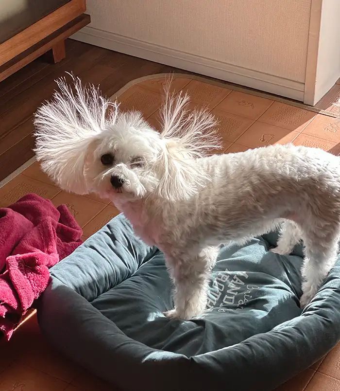 自慢のモフモフな耳が、静電気によって大暴れ!