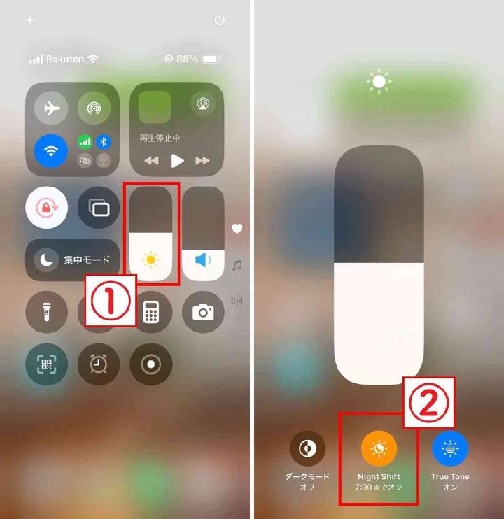 ひとつは「ブルーライトカット機能の有効化」(iPhoneではNightShift、Androidでは夜間モード)で、青色光を減少させ、夜間に目に優しい表示を可能にします。次に「自動輝度調整」をオンにすることで、周囲の明るさに応じて画面の明るさを自動で調整します。