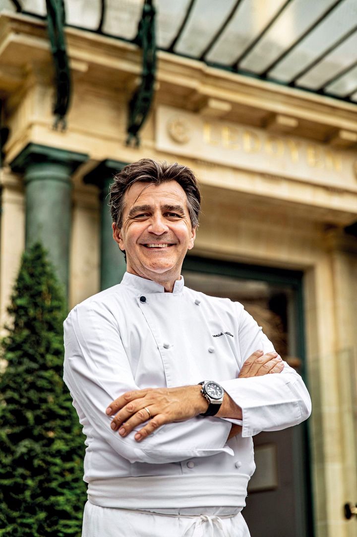ヤニック・アレノさん。2003年、パリの「ル・ムーリス」の総料理長に就任し、2007年にミシュラン三ツ星を獲得。退任後、2014年「パヴィヨン・ルドワイヤン」を率い、その翌年には「アレノ・パリ」で三ツ星を獲得するなど、手掛けるレストランの総計で17の星を擁する、現代フランス料理を代表するシェフ。 撮影=小野祐次