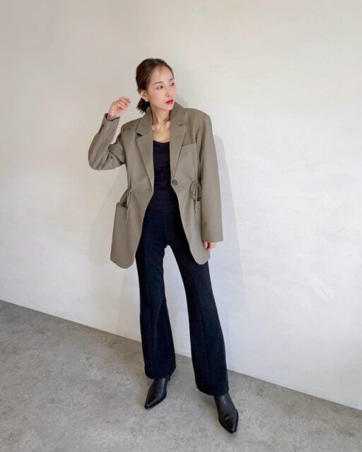 フレアパンツに合う服3|ミドル丈ジャケット・コート