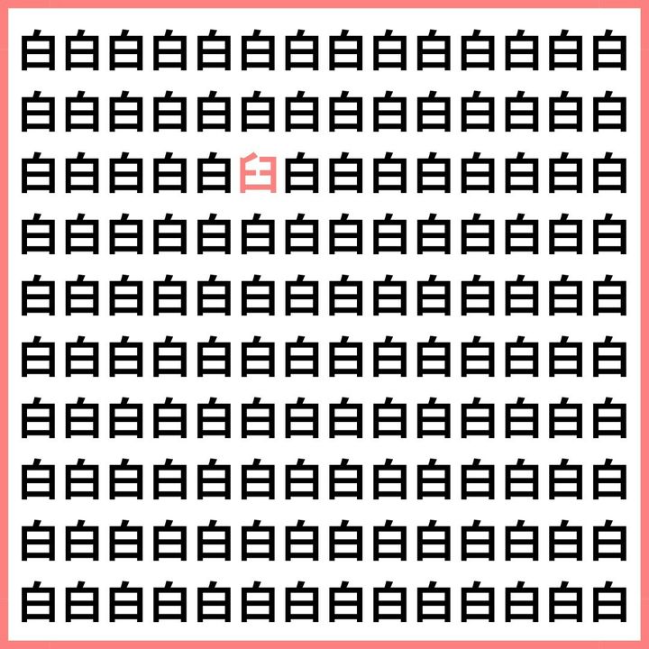 たくさんの「白」の中に、1文字だけ違う漢字が混ざっています。