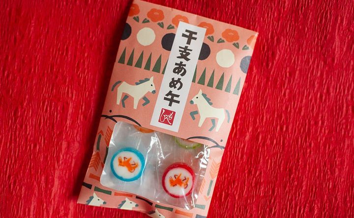 毎年発売されているような気がするので、あえて説明する必要はないかもしれませんが、同商品は、かわいい干支のイラストが入った細工あめ。職人さんが手作りしているらしいですよ。