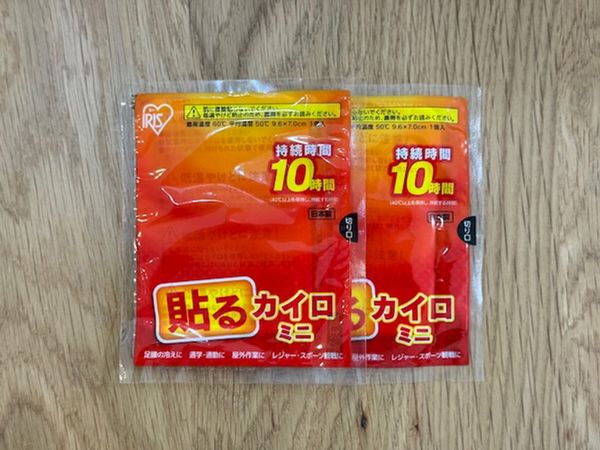 冬の外出時や停電時に欠かせない防寒アイテム。薄型のものを2つ入れておきました。
