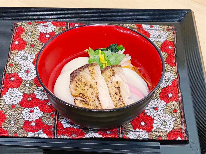 岡山県のお雑煮は、南部では鰤、北部ではスルメのだしを使用するのが特徴的。今回は、昆布と鰤の出汁にスルメを隠し味として加えた南北混合の特別スタイルが提供されます。