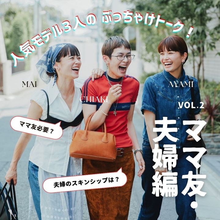モデルやデザイナー、ブランドプロデュースなど、多岐にわたって活躍する宮城舞さん、垣内彩未さん、畠山千明さん。プライベートでも大の仲良しの3人が、HugMug読者から寄せられた質問にお答えする連載企画。2回目は、ママ友との付き合い方や夫婦関係について本音でトーク。飛び出す格言の数々に、背中を押されること間違いなし!記事はこちらから!