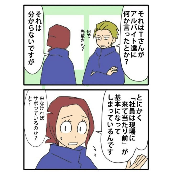 「現場に来ない社員=サボり」と勘違いしたバイト勢。身勝手な社員の行動が根源でした