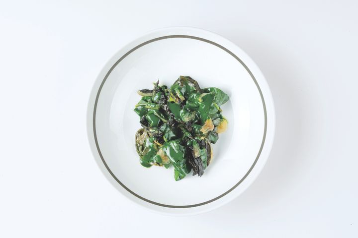 写真/イタリア「レアーレ」の「温かいスイスチャードサラダ」。