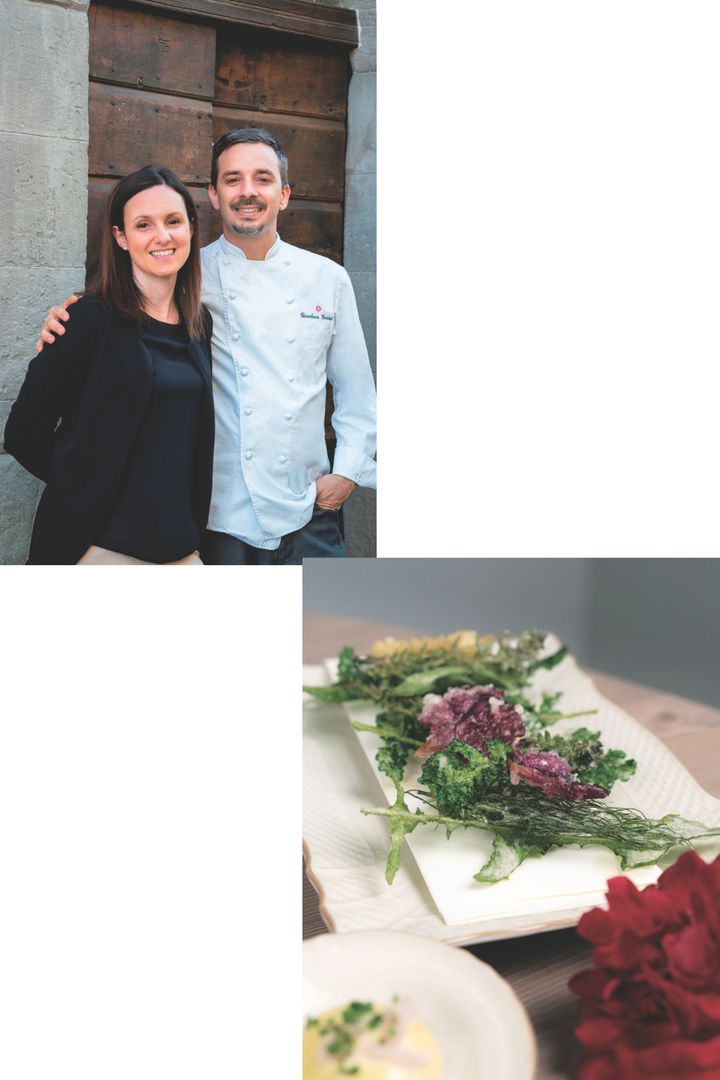 写真/イタリア「ダ・ゴリーニ」シェフのジャンルカ・ゴリーニと、サービスチームを率いる妻のサラ・シルヴァーニ。「土地の素材を、最も自然な形で表現」をテーマに、ジビエ、発酵、薪火などを用いたモダンな料理と温かなおもてなしを提供している。