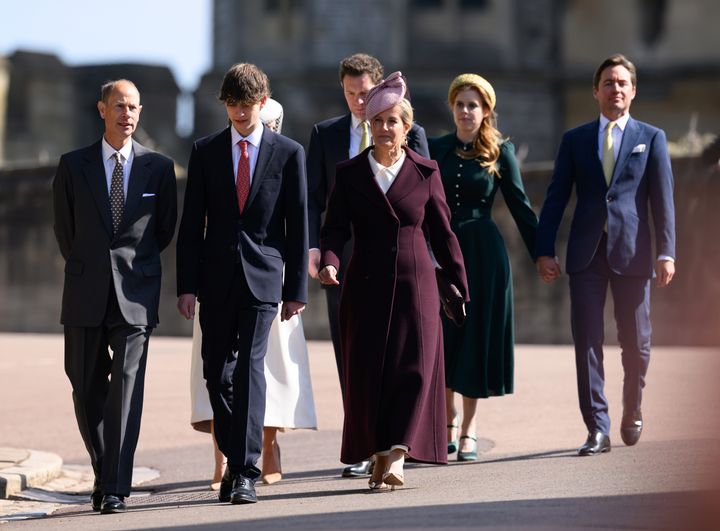 こちらは、聖ジョージ礼拝堂での礼拝へと向かうエディンバラ公爵エドワード王子、その息子ウェセックス伯爵ジェームズ、エディンバラ公爵夫人ソフィー妃。