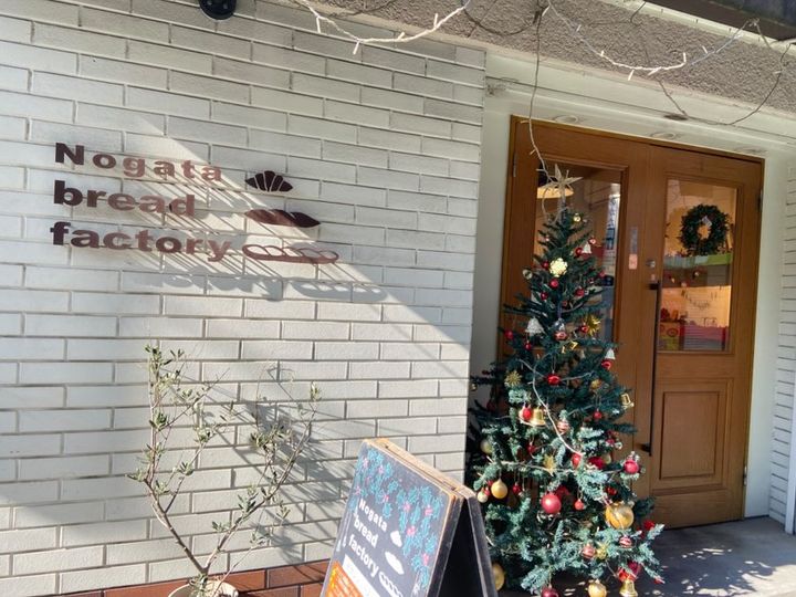 とても可愛らしい建物のパン屋さんです。お店入口には、クリスマスの時期だったのでおしゃれなクリスマスツリーが飾られていました。