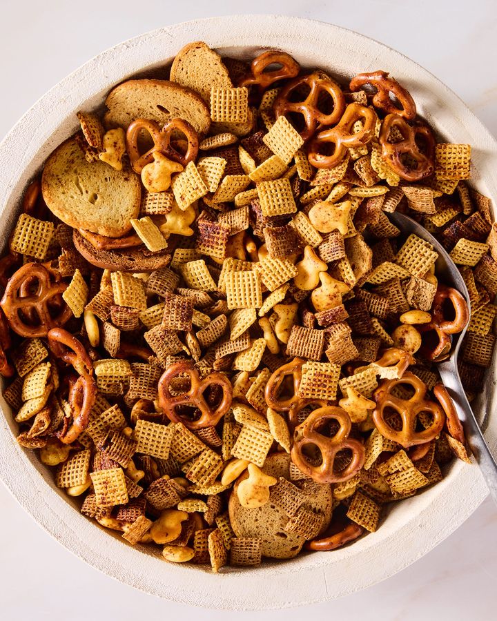 ドイツでは昔から、新年の幸運と繁栄を願ってプレッツェルを割る伝統がある。これは真夜中に食べることもあれば、元旦の朝食として食べることもある。ドイツのプレッツェルはアメリカでよく見かけるものとは違い、バブカやブリオッシュのような甘くふっくらとした生地で作られている。甘いドイツ風のプレッツェルを自分で焼く気にならなくても、大晦日のパーティーでプレッツェルを出すだけでも十分。本当に大事なのは、大切な人と分かち合い一緒に割ること(プレッツェルはつながりを象徴する)。市販の商品を混ぜたスナックミックスや、チーズやディップと一緒に提供してもOK。