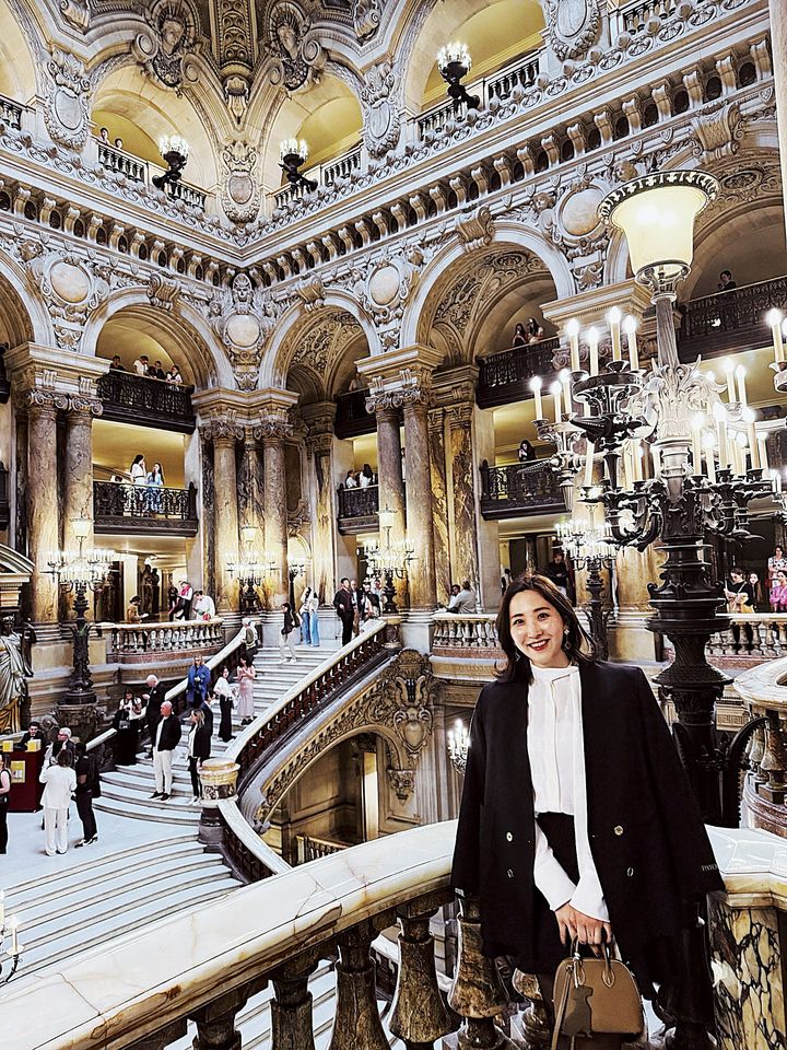 <strong>大好きなオペラ座で<br></strong>バレエを習っていたこともあり、オペラやバレエなどの芸術鑑賞は大切なパワーチャージに。 Mamiko