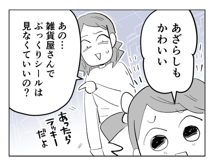 ユイさん、当てが外れて大焦りです! 100円ショップのシールに悩む姿を見て、かえって「娘が感じているぷっくりシールの価値」を大きく見積もっていたことに気付かされました。100円であっても500円であっても、どちらも同じように「かわいい」。めずらしかろうと簡単に買えようと、自分がキュンとしたものを買いたい。人の価値観に流されないというのも、素敵な姿だなと思いますが、ユイさんはどう感じたのでしょうか。