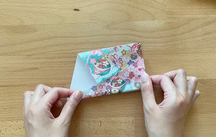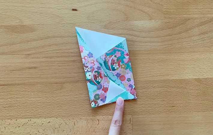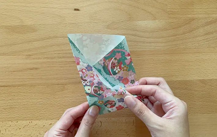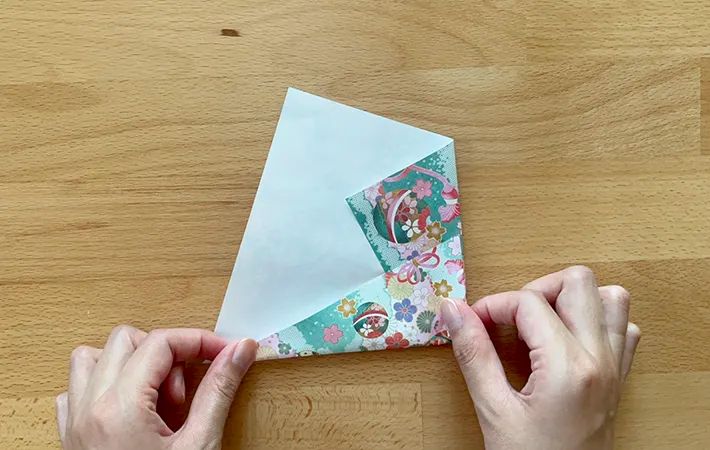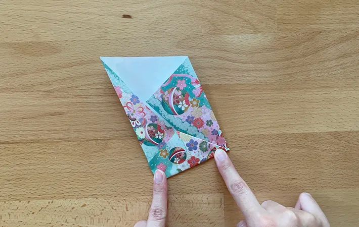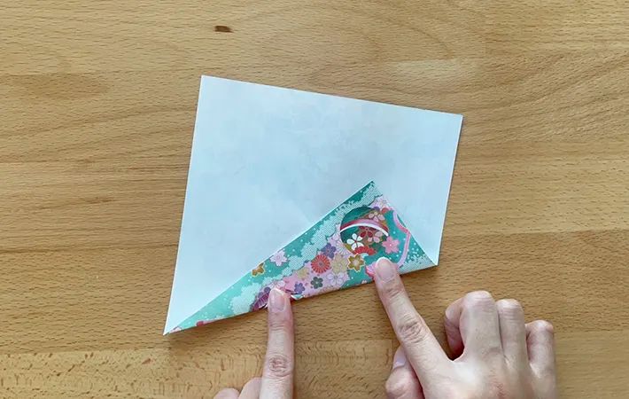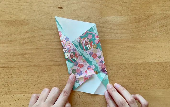 再び折り込み、先ほど折り目をつけた部分を差し込みましょう。