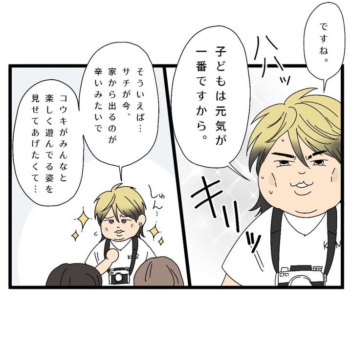 信也さんの妻想いな行動に「もちろんです!コウキくんママも喜ぶんじゃないかな」「コウキくんパパやさしい~」と称賛の声を上げるママ友たち。すると信也さんは、「いえいえ、サチに少しでも安心してほしくて」とデレデレした表情で照れくさそうに頭をかきました。