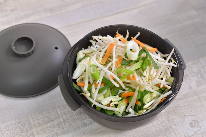 鍋で野菜たっぷりのラーメンを作るときって、麺を茹でながら別の鍋で野菜も茹でなくてはならず、てんやわんやでしたが、この「ザル付きビストロヌードル」を使えば、野菜も一緒にレンジでチンするだけで簡単に完成!