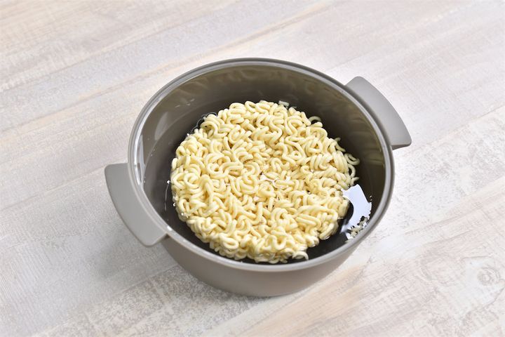 600W:即席麺の袋表示の鍋で茹で時間+3分