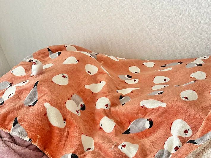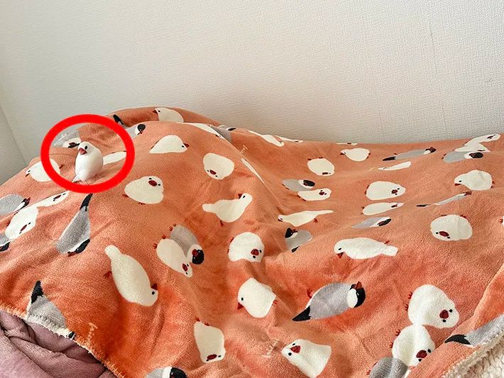 文鳥が描かれた愛らしいブランケットの上に、『本物』が紛れているといいます。