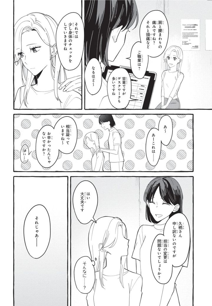 嫌な予感が的中。佳帆の担当になった「いおりくん」のマスクを外すと……見知った泰の顔が出てきました。会いたくなかった男友達と思いがけず再会してしまった佳帆ですが、ここは整体院。どう行動するのでしょうか?