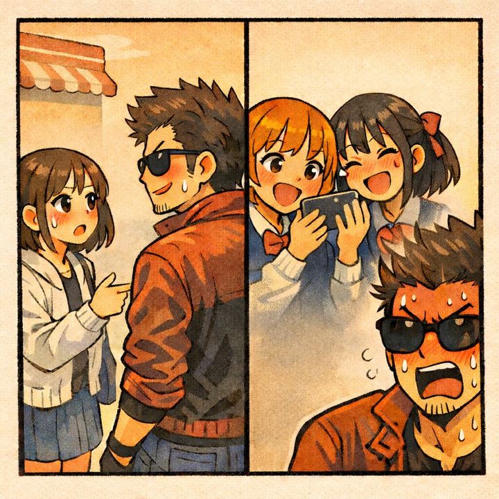 すると、後ろに並んでいた女子高生たちがスマホを操作しながら、クスクスと笑い声を上げました。