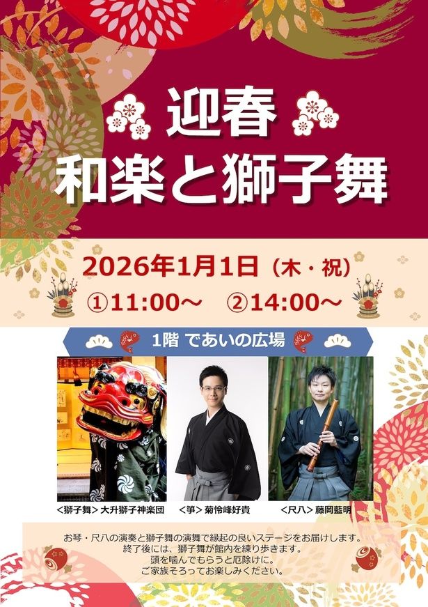 【迎春 和楽と獅子舞】イオンモール日根野 / 大阪府泉佐野市日根野2496-1 / 2026年1月1日(祝) / (1)11:00~、(2)14:00~ / 入場無料