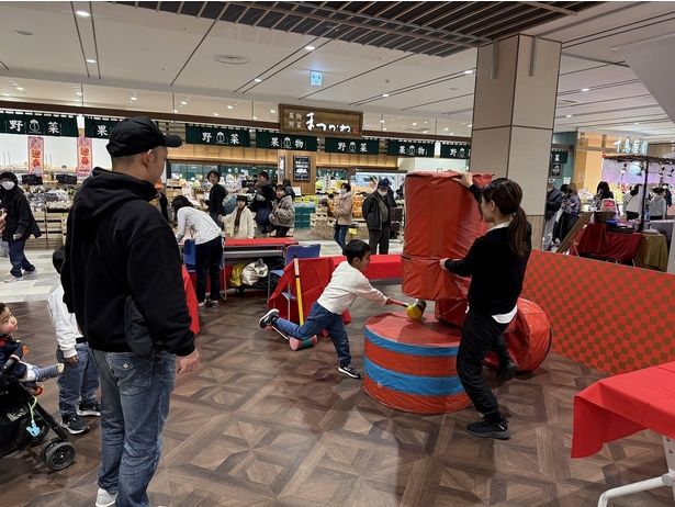 新年の幕開けにふさわしい、福を呼び込む新春イベント。3メートル×4メートルの巨大な「ジャンボ福笑い」は、目隠しをした状態で行うため、みんなで声を掛け合いながら大いに盛り上がれる。完成後は記念撮影も可能。昔懐かしい遊び「だるま落とし」は巨大サイズで登場。高さの調節が可能で、最大5段まで積み重ねられる。さらに、「開運!おみくじ迷路」は出口にはそれぞれ「大吉」「中吉」「小吉」が割り振られており、1年の運試しに適している。