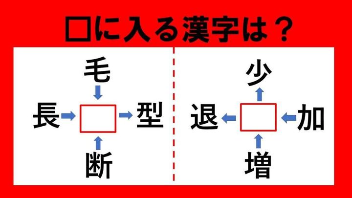 □に入る漢字はなんでしょう? 毛□、長□、断□、□型・・・!?