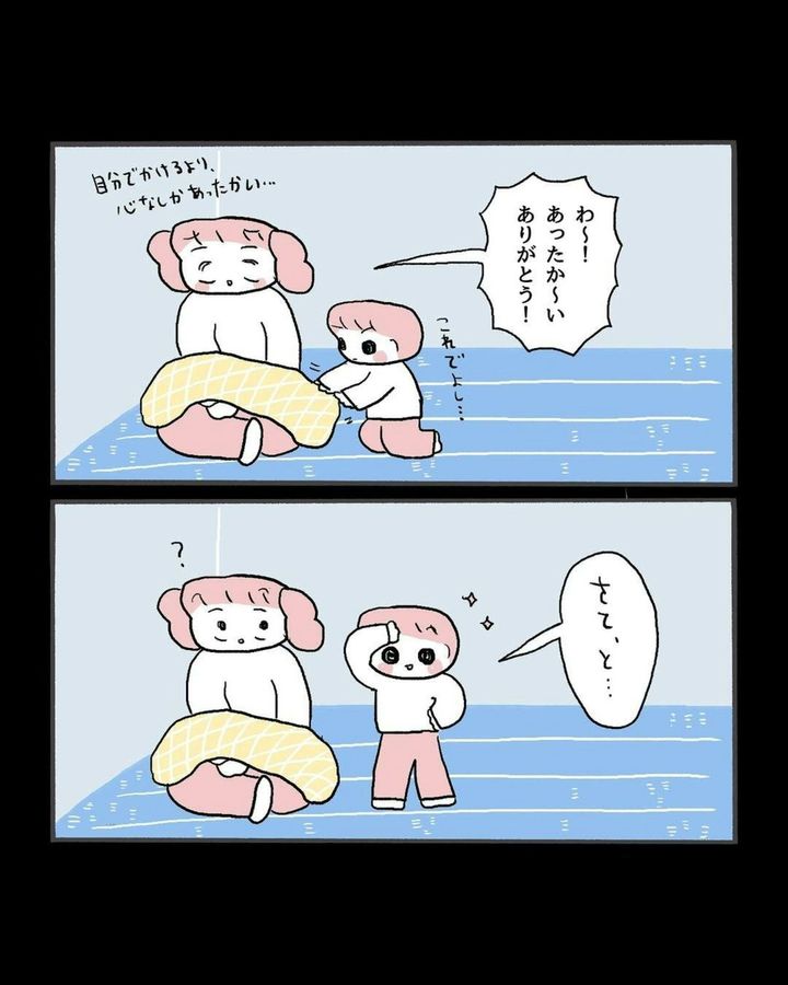 伊藤ぽんぽこ(@ito_ponpoko)さんの4歳の息子の行動に、ママはキュンとしてしまいました。ある寒い朝、伊藤ぽんぽこさんが暖房をつけようと言うと、と毛布を持ってきてくれた息子。これだけでも感動していたのに、息子はまるでドラマに出てくるようなセリフと行動でママを沼らせてしまいました。