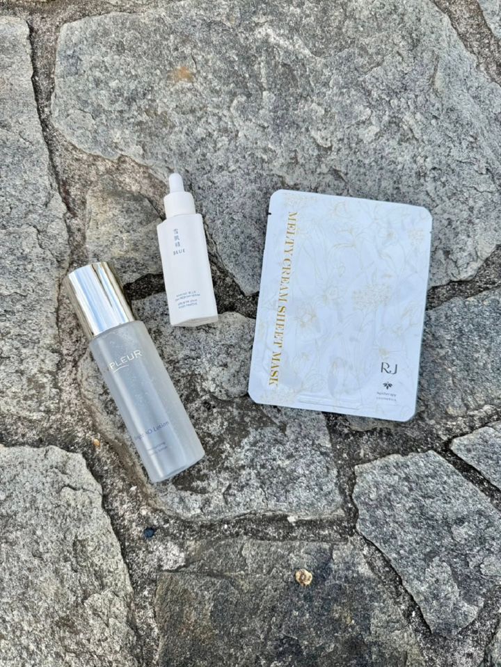 右から:濃厚でミルキーなジェルクリームを1枚に26mLも含有! 1度の使用でお肌もっちり♡ RJメルティクリームシートマスク 5枚入り ¥5,170(山田養蜂場)※限定発売、UVカットとスキンケアが同時に叶う日中用美容液。化粧下地としての役割も果たします。雪肌精 BLUE デューイー フレッシュ デイ セラム SPF40・PA+++ 30mL ¥7,150〈編集部調べ〉(コーセー)※2026年2月16日発売、グルタチオンを配合した透明感爆上がりローション! ブライトニング、保湿、抗炎症効果と美肌効果もパワーアップ。アンプルール ブライトAOローションN 120mL ¥5,500(アンプルール)※2026年2月27日発売