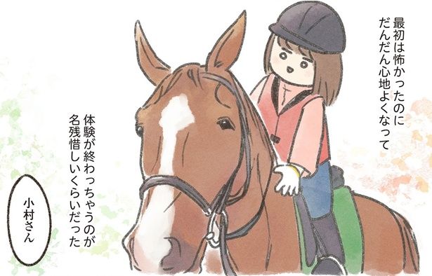 著者の乗馬への温かな想いがひしひしと感じられるコミックエッセイだ。そして、それと同時に、著者が馬と過ごした日々の記録でもある。読めばきっと、あなたも馬と触れ合ってみたくなるだろう。本を閉じたあと、すぐにでも「近くで乗馬ができる場所」と検索したくなるに違いない。