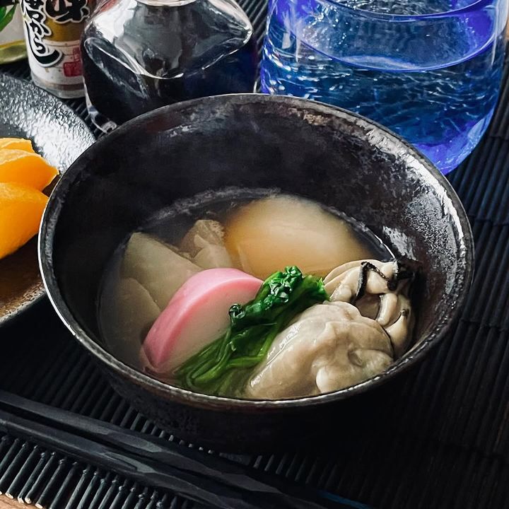 @as_cooking_さんは、昆布出汁に薄口醤油と塩で味付けし、丸餅、牡蠣、セリ、大根、かまぼこを入れてお雑煮に。牡蠣の旨みがじんわりと溶け込んだ汁が絶品で、セリのすがすがしい香りとシャキシャキとした食感がアクセントになったよう。