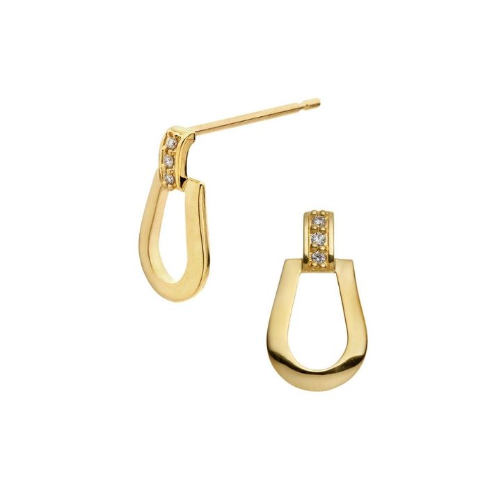 やわらかい膨らみを持たせたフォルムとゴールドのつややかさ、そしてトップ部分にセットされたダイヤモンドによって、カジュアルになりがちな馬蹄モチーフがエレガントな印象に。シーンや服装を選ばず活躍し、毎日身につけるお守りジュエリーとしてもおすすめ。