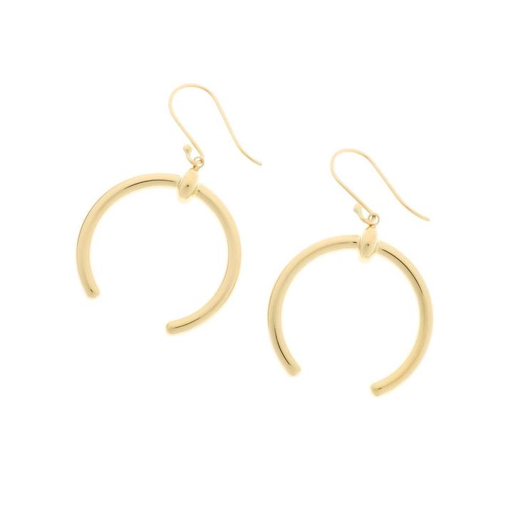 幸運の象徴である馬蹄モチーフを再解釈し、丸みのあるサークル状のフォルムで表現。イエローゴールドの地金のみでデザインされ、シンプルでモダンな仕上がりに。モチーフがゆらめく様子はエレガントで優雅な気分にさせてくれる。