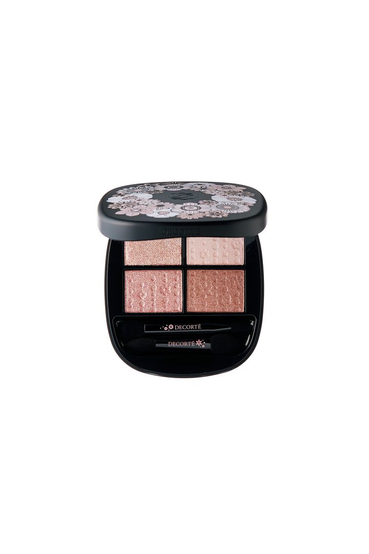 華やぐ季節にマッチするきらめきと、顔立ちに溶け込むさりげない発色で上品な仕上がりが叶うメークコレクション。誰でも使いやすいベージュピンクのアイシャドウ、血色感が続くコーラルレッドのスティックルージュ、肌に透明感を与えるプライマー、繊細パールを含んだフェイスパウダー、オリジナルポーチがセットに。コスメデコルテ エターナル ブルーム コレクション ¥9,350(コスメデコルテ)