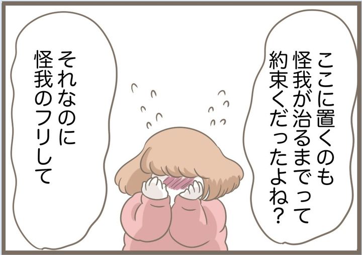 洗濯物も蹴り飛ばし、手も足もケガが治っていることがバレた。