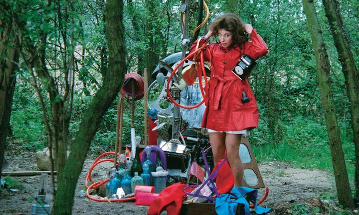ヒロインが終盤に着る真っ赤なミニ丈のコートは金色のハイヒールと共に彼女の意志の強さを表すアイテム。スタンドカラーでチャイナ服のようなフロッグボタンがついている。 ©1969 Cythère films–Paris