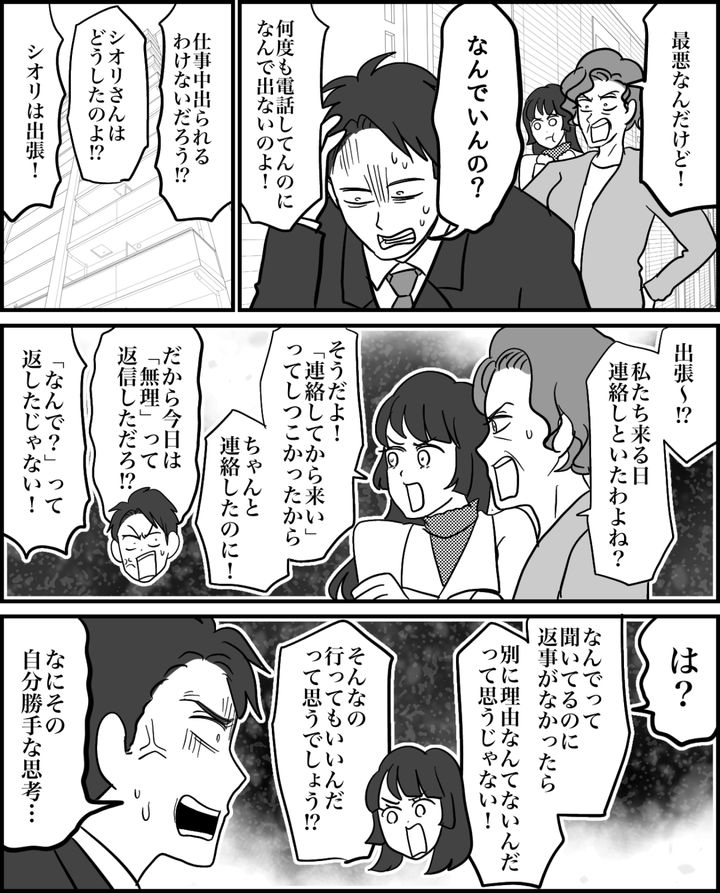 <義母と義妹、迷惑ですッ!>居留守が通じず出張へ「働きすぎ!」嫌味言われ…イラッ【まんが】