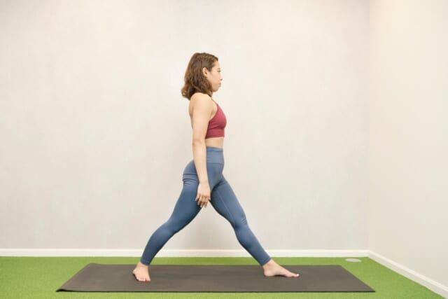 反対側も同様に行います。なお、期待する効果をきちんと得るためには「脚を大きく後ろに引く際も前脚のひざを曲げる際も、常に骨盤をまっすぐ正面に向けたままにすること」がポイント。また、不自然に肩が上がってしまったり、腰が反ったりしないように注意しましょう。自然と「細見えライン」が整っていきますよ。<ヨガ監修:Minami(インストラクター歴4年)>