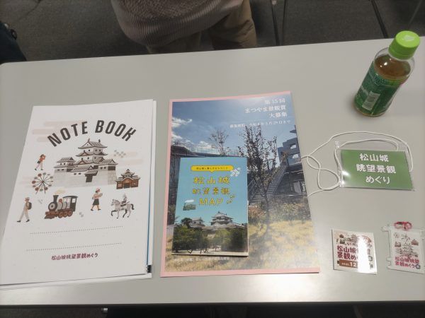 資料と松山城眺望景観MAP。記念品(右側)ももらえます